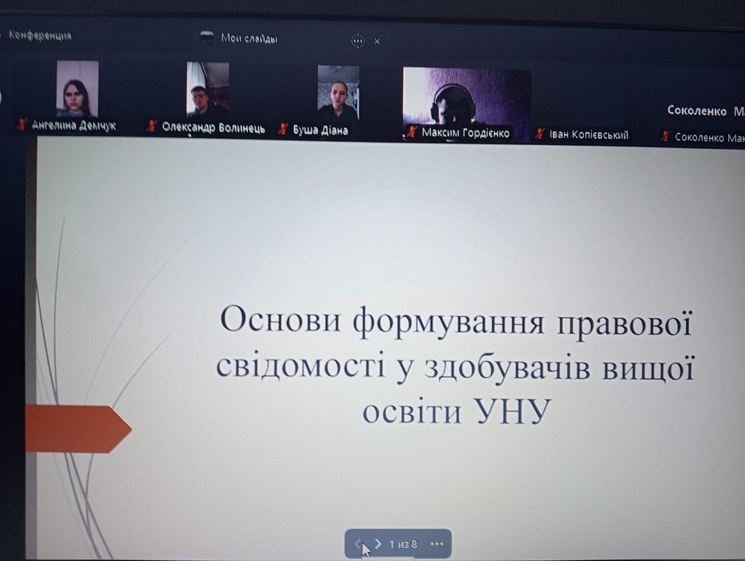 Правова свідомість є невід’ємною характеристикою сучасної людини. Саме тому на кафедрі соціально-гуманітарних і правових дисциплін, факультету менеджменту, УНУ, в рамках навчальної дисципліни – Правознавство, відбувся науковий семінар - «Основи формування правової свідомості у здобувачів вищої освіти УНУ».